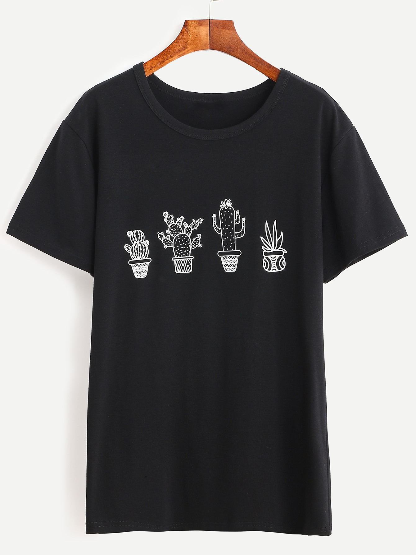 Black Cactus Print T-shirt Discounted at only: US$ 9.99