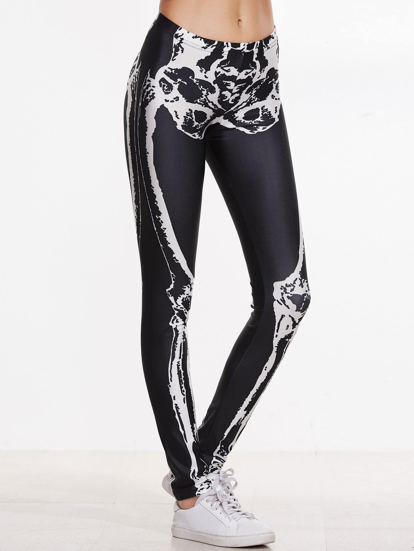Black Skeleton Print Leggings Discounted at only: US$ 10.99
