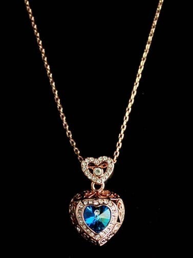 Blue Gemstone Gold Heart Chain Necklace Discounted at only: US$ 9.80