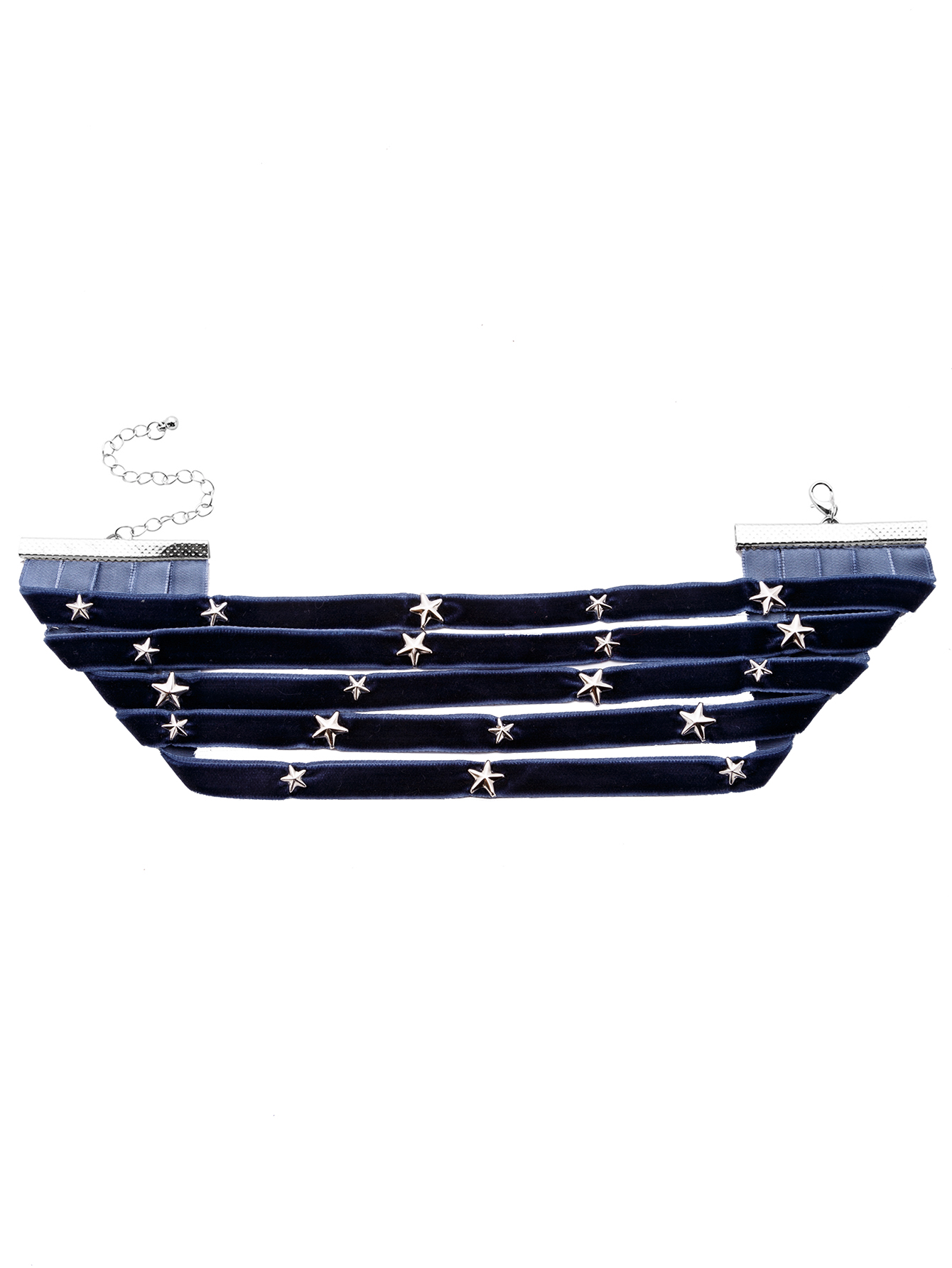 Navy Layered Metal Star Wide Choker Necklace Discounted at only: US$ 4.99
