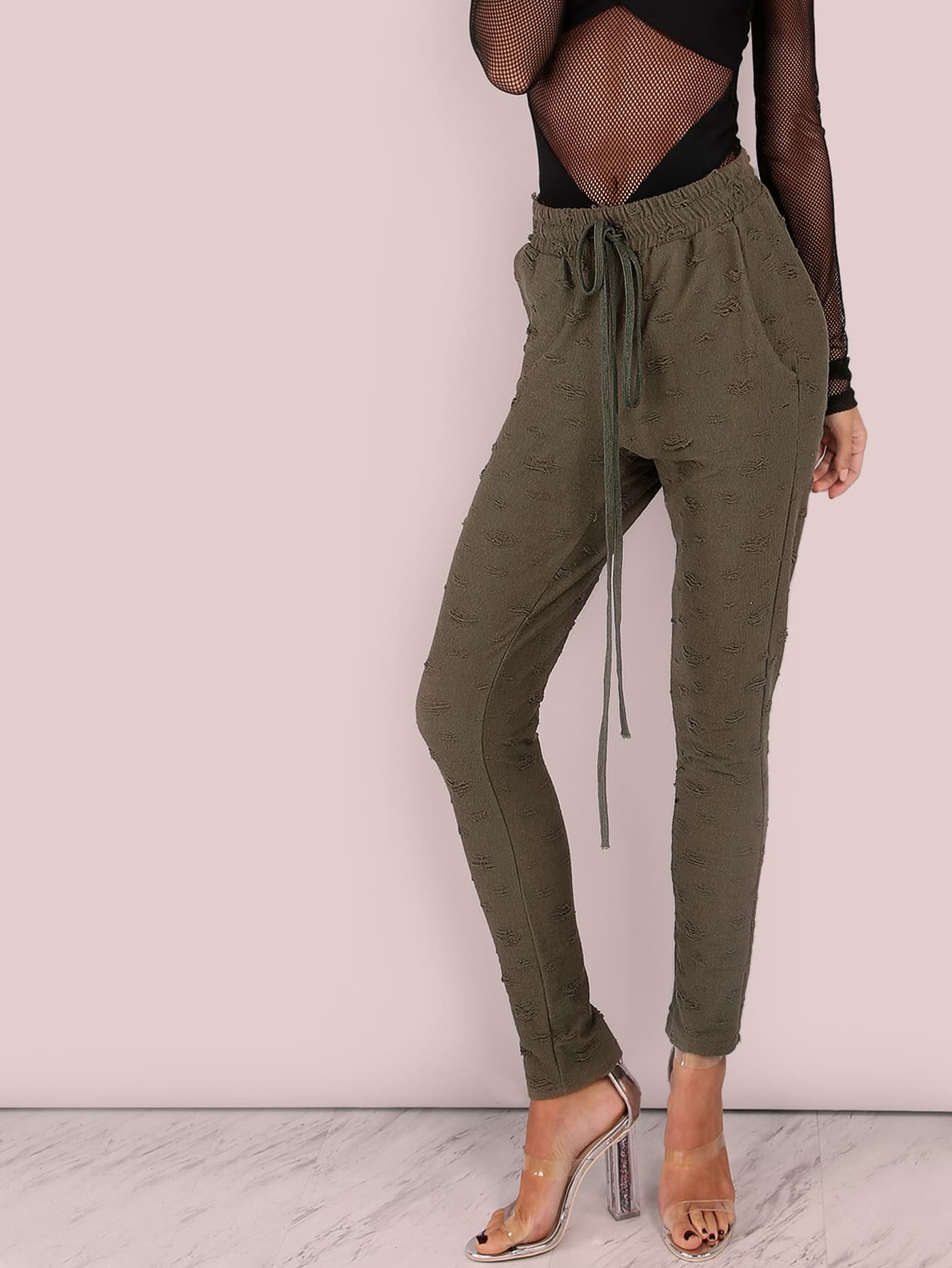 Ragged Skinny Sweatpants OLIVE Discounted at only: US$ 15.99